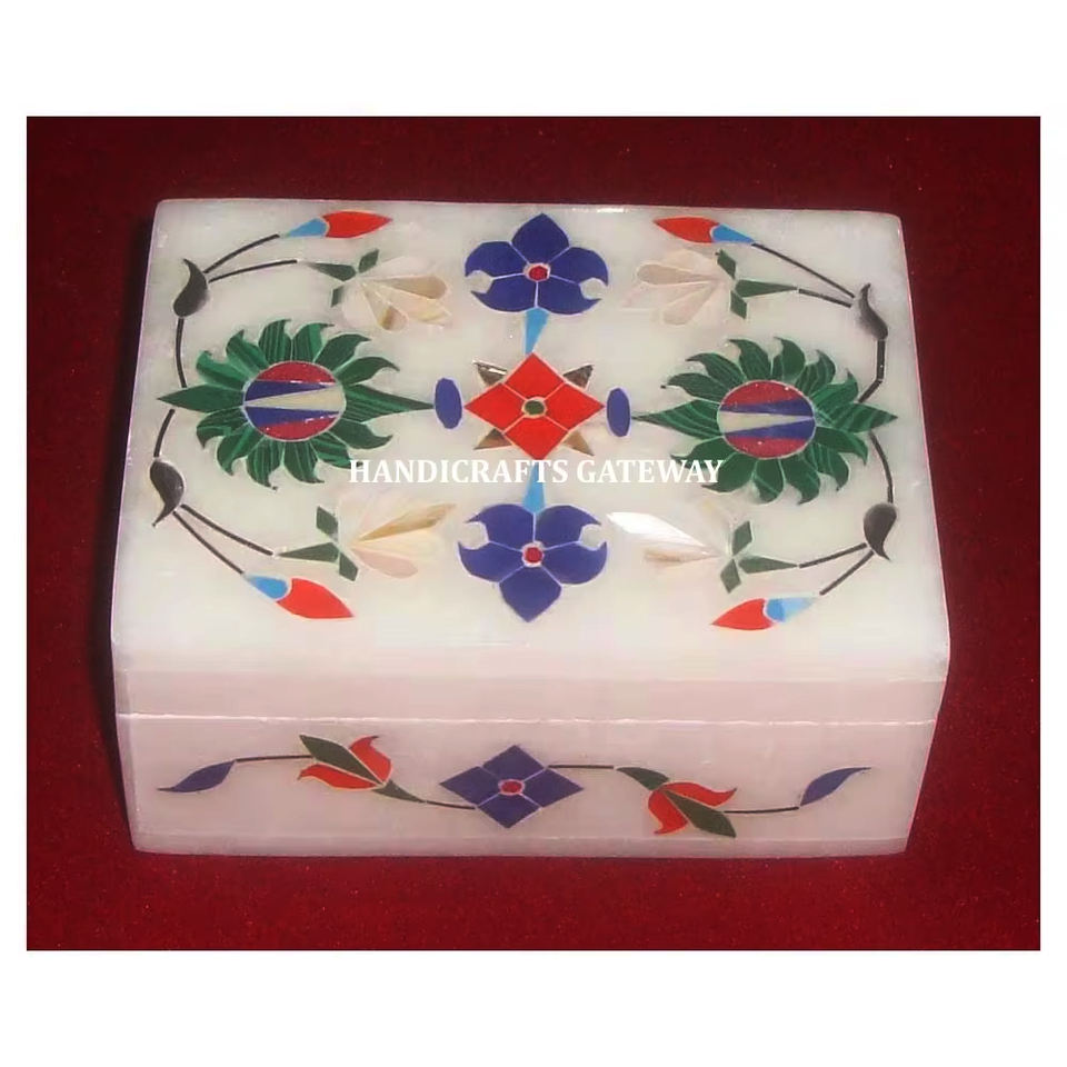 กล่องเก็บเครื่องประดับฝังหินอ่อนสีขาวบริสุทธิ์ทรงสี่เหลี่ยมดีไซน์พิเศษทำด้วยมือโบราณสำหรับองค์กรที่มีพรสวรรค์