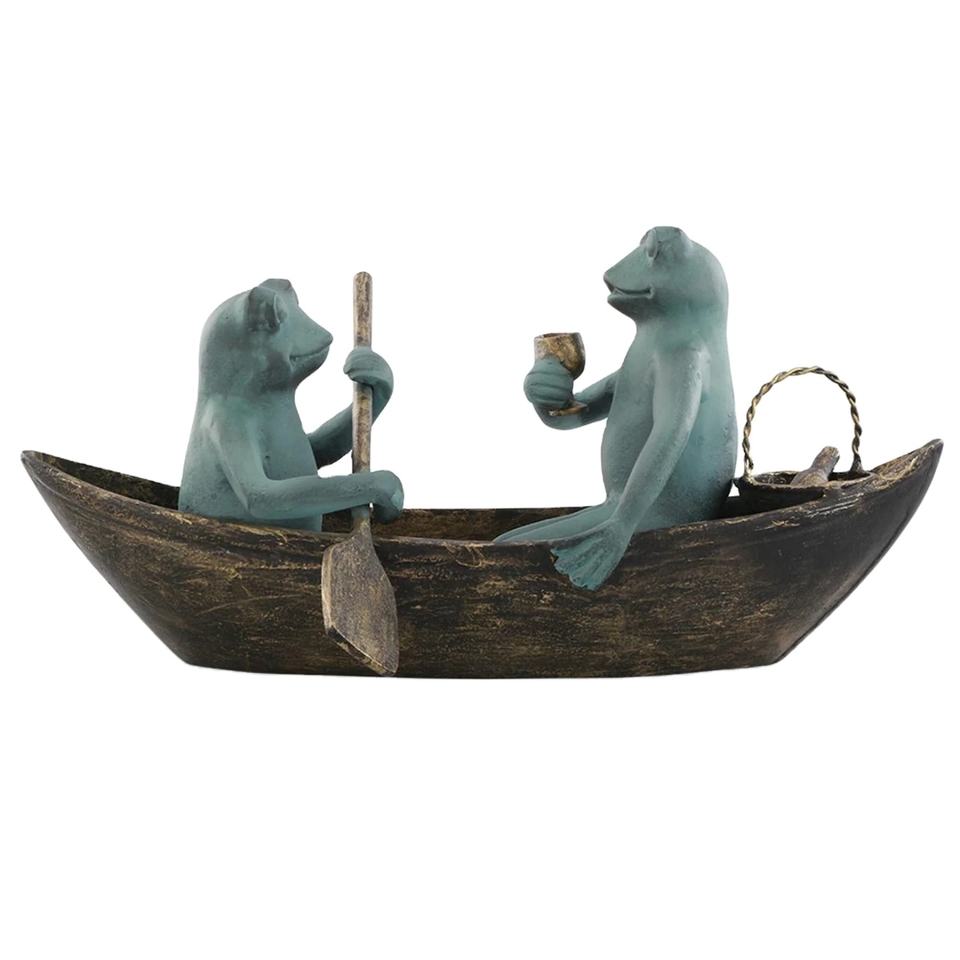 งานหัตถกรรมโลหะโบราณรูปปั้นกบพายเรือดีไซน์ทันสมัยสำหรับตกแต่งภายในกบวัตถุโชว์ชิ้นงาน