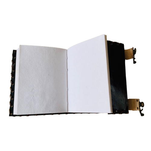 สมุดวาดเขียนโบราณทำมือ สมุดบันทึกหนังแท้ลายปั๊ม กระดาษฝ้ายไม่เส้นบรรทัด ไดอารี่เดินทาง คลาสสิก ขนาด 7x5