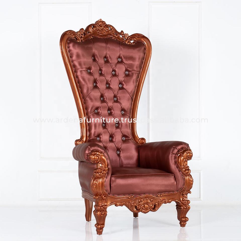 เก้าอี้สูงหลังโบราณทำจากไม้เนื้อแข็งสไตล์ราชวงศ์หรูหราสำหรับงานโรงแรมงานเลี้ยงวิลล่าห้องนั่งเล่นขายส่ง