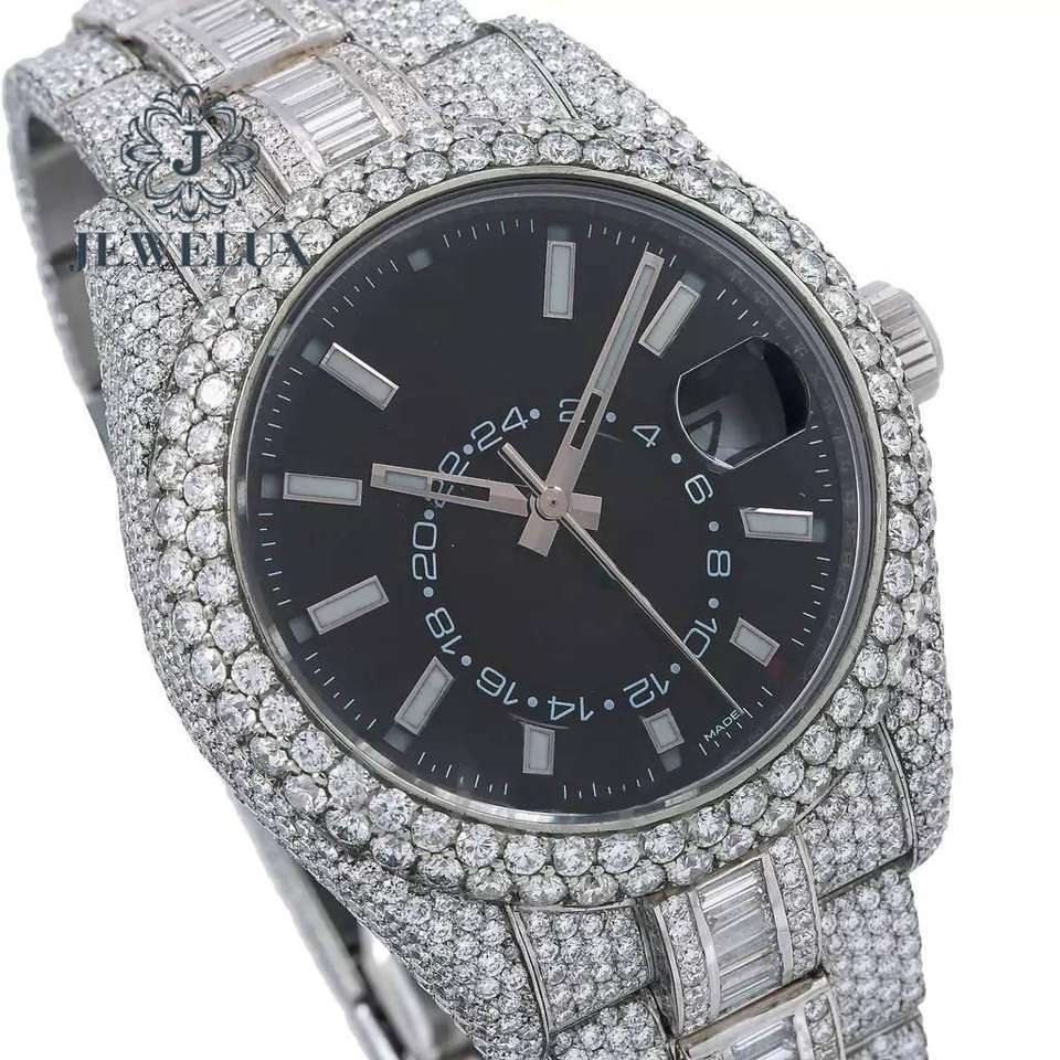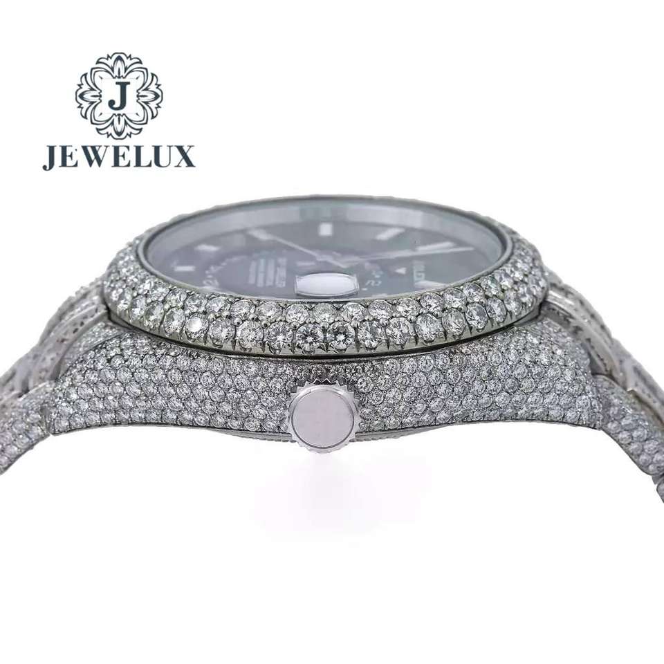 นาฬิกาสแตนเลสสไตล์ฮิปฮอปโบราณพร้อมเพชรโมอิสซาไนต์แบบสองเวลาปฏิทินประจำปี20มม. ดีไซน์อนาล็อกที่กำหนดเอง