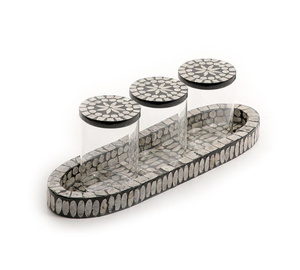 โบราณโฮมเมดแม่ของเพิร์ลเรซิ่นตกแต่งบ้านที่ให้บริการถาดที่มีขวดอะคริลิชุดร้อนขายที่กำหนดเองบ้านคุณลักษณะบนโต๊ะอาหารถาด