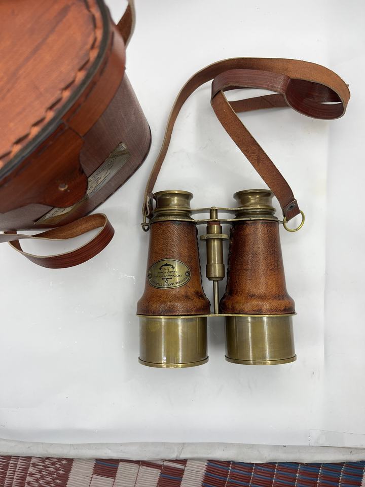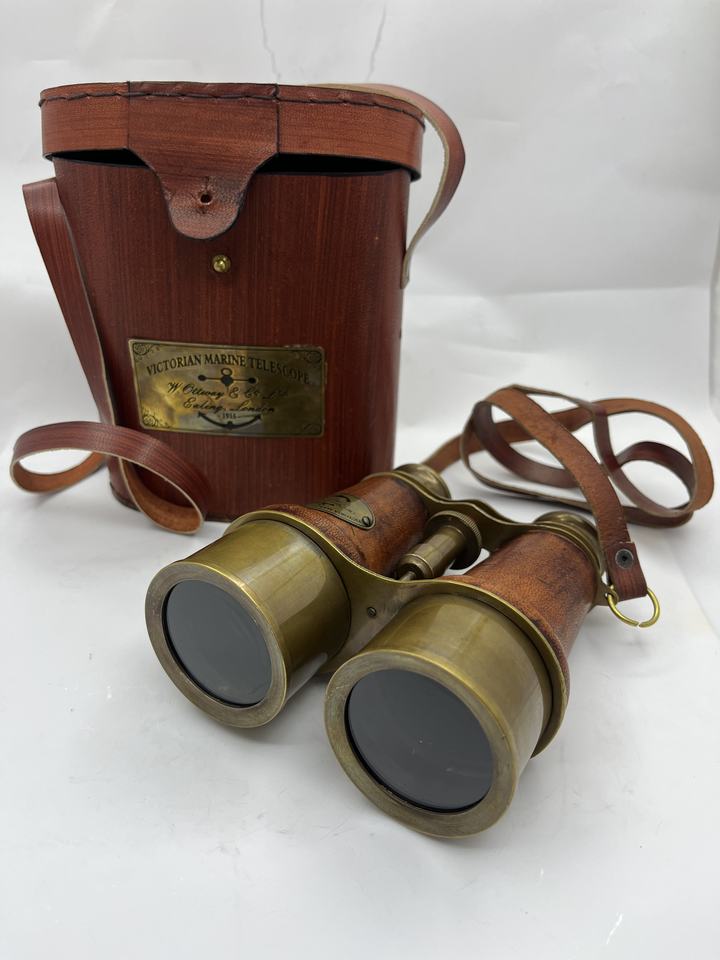กล้องส่องทางไกลแบบโบราณ งานแฮนด์เมด หุ้มด้วยหนังขัดเงา สายคาดทำจากทองเหลืองแท้ ของขวัญสุดพิเศษ