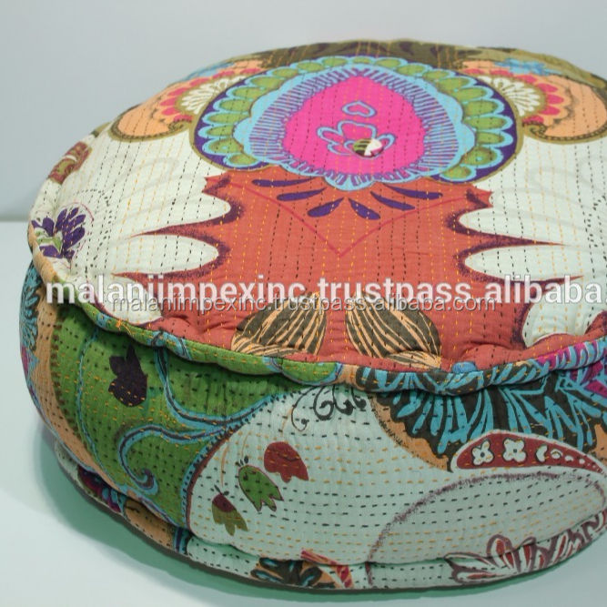 ม้านั่งทรงกลมพิมพ์ลายสไตล์อินเดียโบราณปรับแต่งได้เก้าอี้ผ้าทำมือสำหรับตกแต่งบ้านและโรงแรมห้องนั่งเล่น