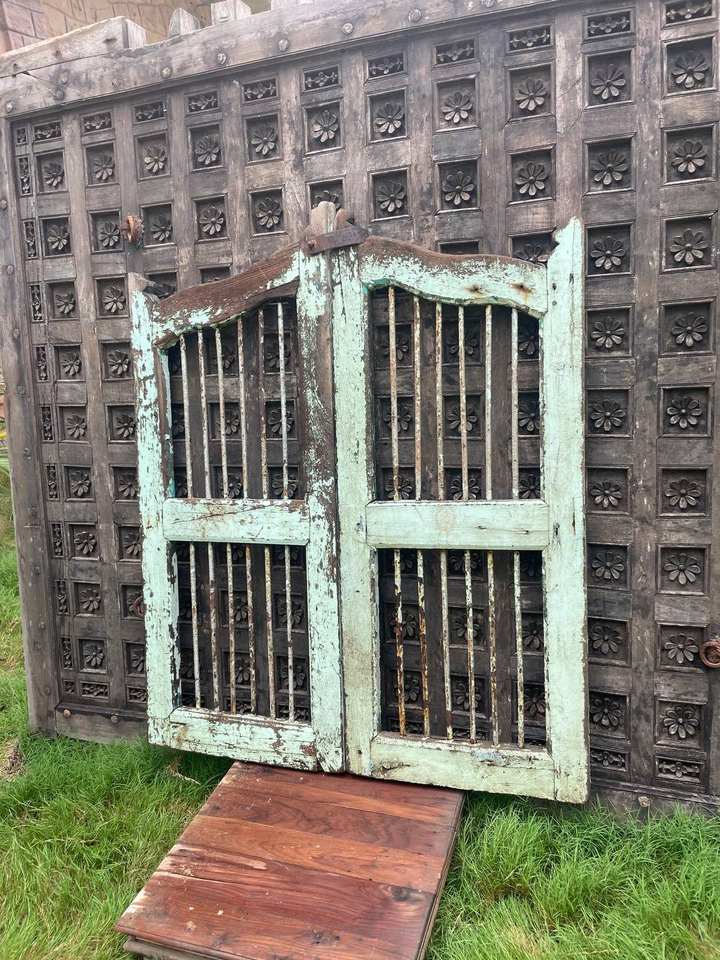 ประตูไม้สักแบบอินเดียโบราณคู่สำหรับแต่งบ้านสุนัขอเนกประสงค์สำหรับห้องครัวห้องนั่งเล่นห้องนอนรับประทานอาหารบ้านสำนักงานห้องน้ำ