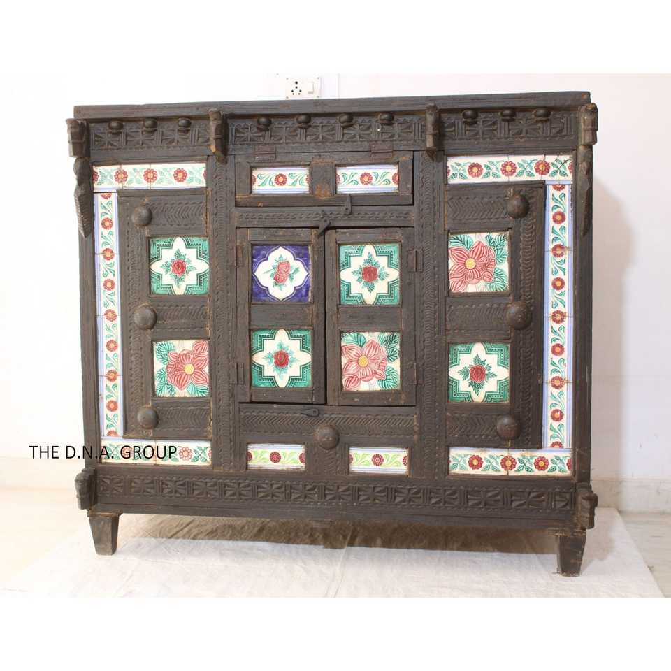 กล่องไม้เก็บของตกแต่งจากไม้เก่าของอินเดียโบราณ