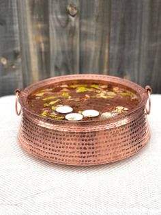 ชามทองแดงสำหรับทำเล็บเท้าแบบโบราณที่มีดีไซน์ที่ซับซ้อนช่วยเพิ่มความหรูหราให้กับร้านเสริมสวยและสปา
