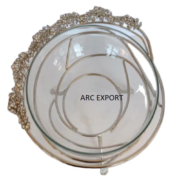 ชามดีไซน์แบบโลหะลวดเหล็กโบราณพร้อมวัสดุแก้วสีขาวใสชามเสิร์ฟแฟนซีสำหรับงานออกแบบ