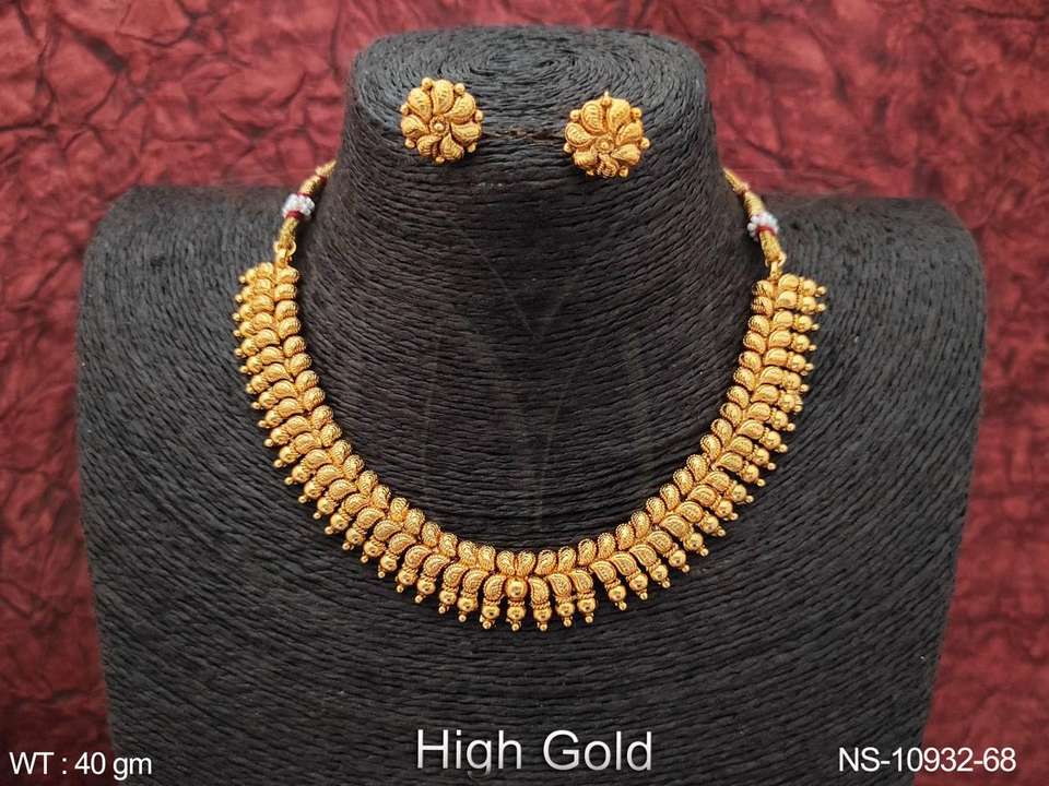 เครื่องประดับโบราณสูงสีทองขัดเงาสวยงามเรียบทองดีไซน์เครื่องประดับผู้หญิงสไตล์โบราณสร้อยคอสั้นชุดเครื่องประดับ