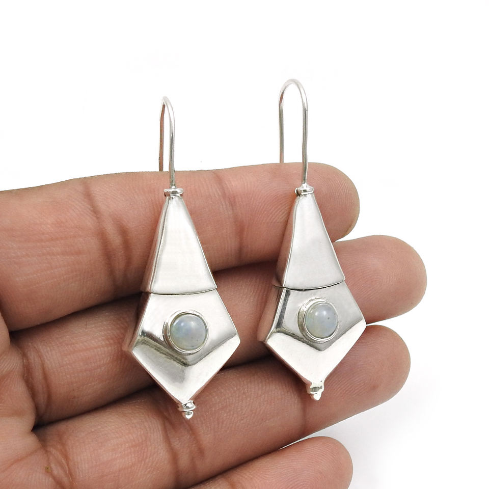 ต่างหูดูโบราณ 925 เงินสเตอร์ลิงธรรมชาติ Rainbow มูนสโตนต่างหูชาติพันธุ์โบฮีเมียนเครื่องประดับทําด้วยมือผู้ผลิตจํานวนมาก