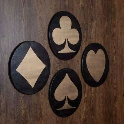 ชุดการ์ดเล่นสีดำแนววินเทจแบบโบราณชุดศิลปะติดผนังสัญลักษณ์โป๊กเกอร์คลาสสิกสี่แบบที่แขวนสำหรับตกแต่งห้องเล่นเกมหรือเลานจ์