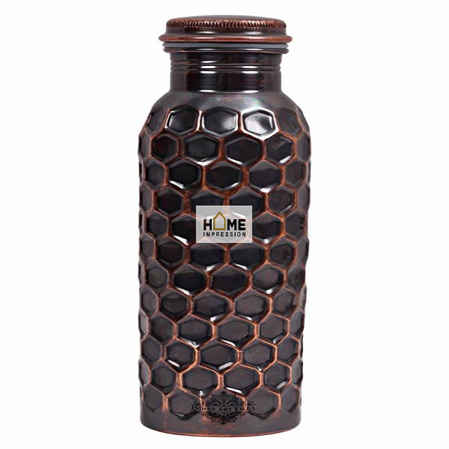 ขวดทองแดงโบราณดีไซน์ลายตอกแบบโบราณ พร้อมสีทองเหลืองโบราณ ทำด้วยมือ ดีไซน์สวยงาม ใช้สำหรับเก็บน้ำ