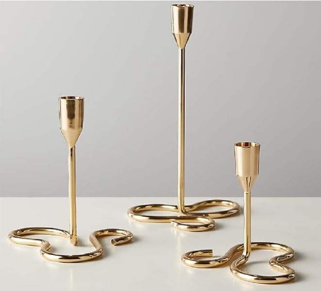 เชิงเทียนทองหรูหราแบบเบาๆ ดีไซน์โลหะไม่ซ้ำใคร ชุด 3 ชิ้น สำหรับตกแต่งงานแต่งงาน วันหยุด เทศกาล และงานปาร์ตี้