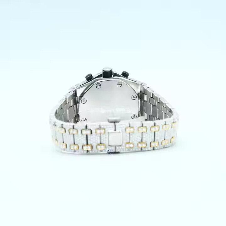 นาฬิกาข้อมือผู้ชายสไตล์สปอร์ตแฟชั่น แบบแอนะล็อก สองสี ขนาด 41 มม. ทำจากสแตนเลสสตีล กันน้ำ ประดับเพชรโมอิสซาไนต์ หรูหรา แบบโบราณ
