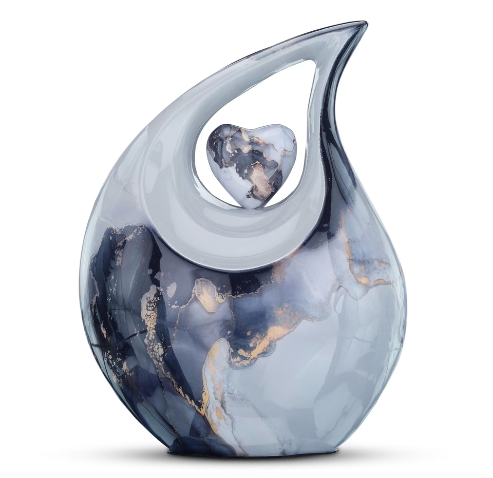 โกศบรรจุอัฐิรูปหยดน้ำพร้อมหัวใจ สำหรับผู้ใหญ่ ทำจากโลหะทองเหลือง/อะลูมิเนียม ตกแต่งด้วยหินอ่อนโบราณ
