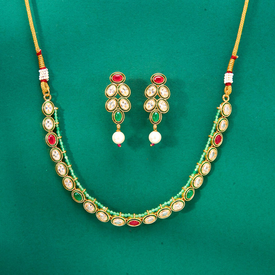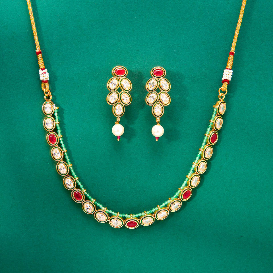 ชุดสร้อยคอ meenakari โบราณพร้อมชุบทองอุปกรณ์เสริมที่ทันสมัย