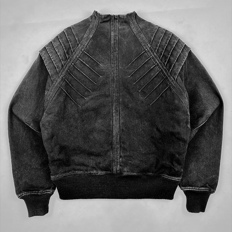 แจ็คเก็ตยีนส์ทรงสลิมฟิตสำหรับผู้ชาย สไตล์คลาสสิกสีเทา คอตั้ง ลุคย้อนยุค ผ้าเดนิมฟอก แห้งเร็ว ระบายอากาศดี รับทำโลโก้ตามสั่ง บริการ OEM