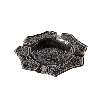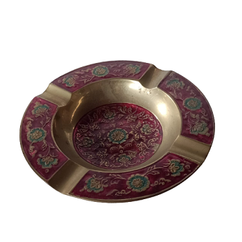 ที่เขี่ยบุหรี่ทองเหลืองโบราณลายดอกไม้และใบไม้