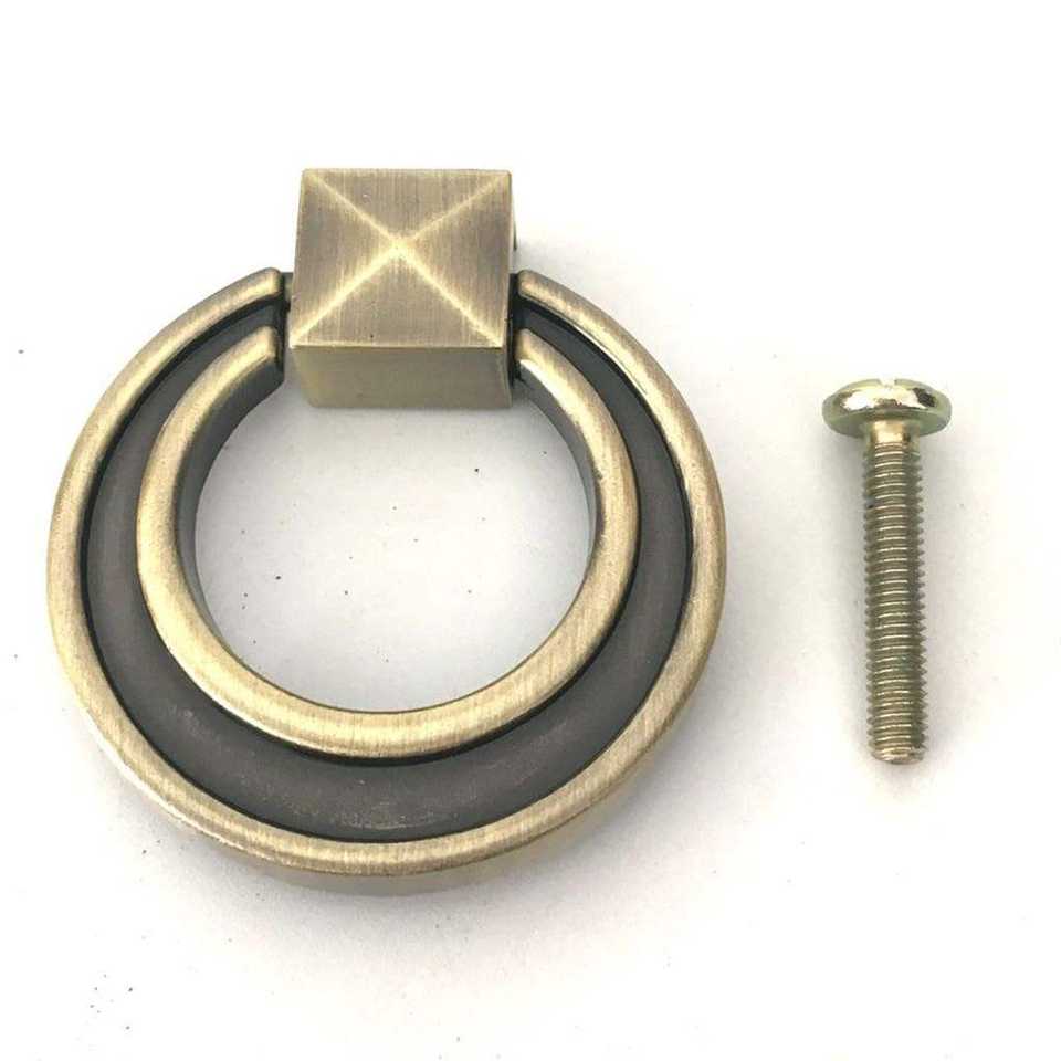 ลูกบิดโลหะโบราณพร้อมห่วงดึงทรงกลมสำหรับมือจับประตูตู้ลิ้นชักตู้เสื้อผ้า ของตกแต่งบ้านสไตล์วินเทจ อุปกรณ์ฮาร์ดแวร์สำหรับบ้านและสวน