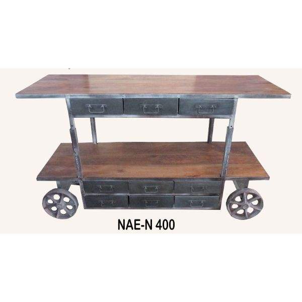 โต๊ะรถเข็นเหล็กโบราณ ดีไซน์วินเทจพร้อมลิ้นชัก สไตล์อินดัสเทรียล เฟอร์นิเจอร์ตกแต่งบ้าน ห้องครัว บ้านไร่ อพาร์ทเมนท์ ห้องนั่งเล่น วิลล่า
