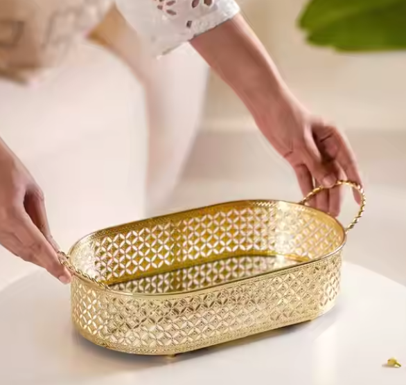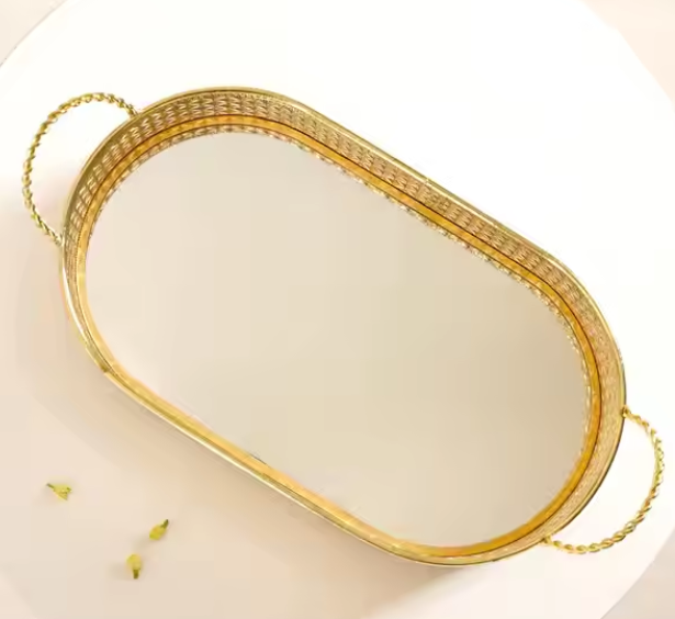 ถาดเสิร์ฟโลหะโบราณ ทำด้วยมือ คุณภาพสูง น้ำหนักเบา รูปทรงวงรี ดีไซน์หรูหรา ใช้ตกแต่งโต๊ะสำหรับวางเครื่องดื่ม