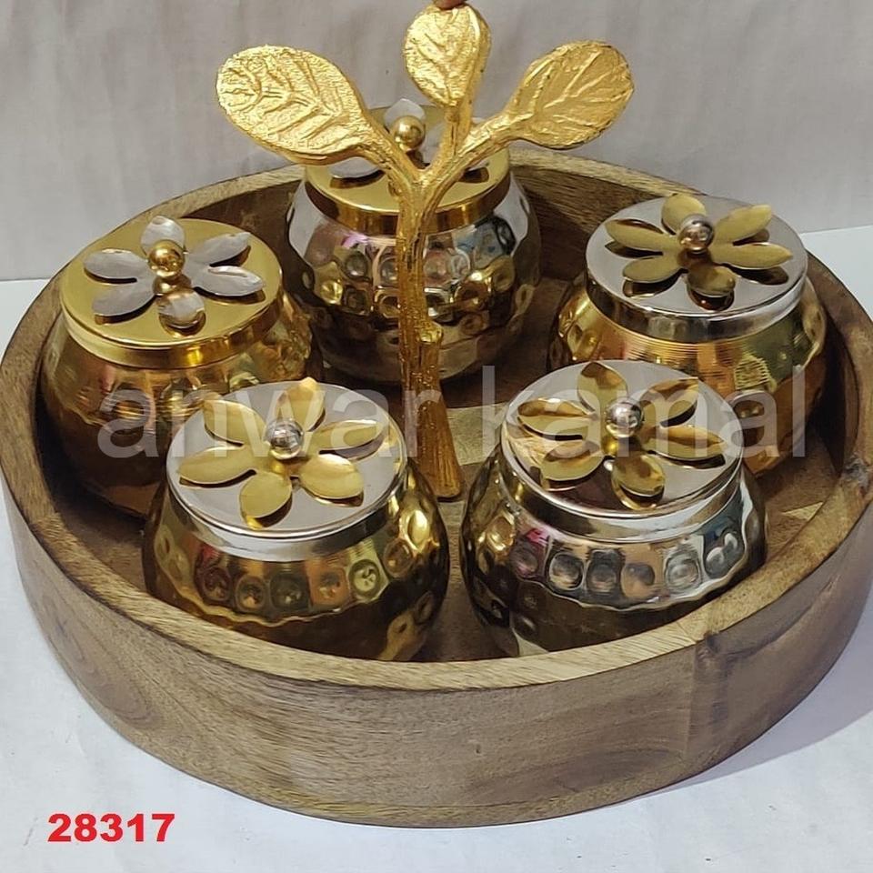 โบราณโลหะและไม้รอบถาดเสิร์ฟ