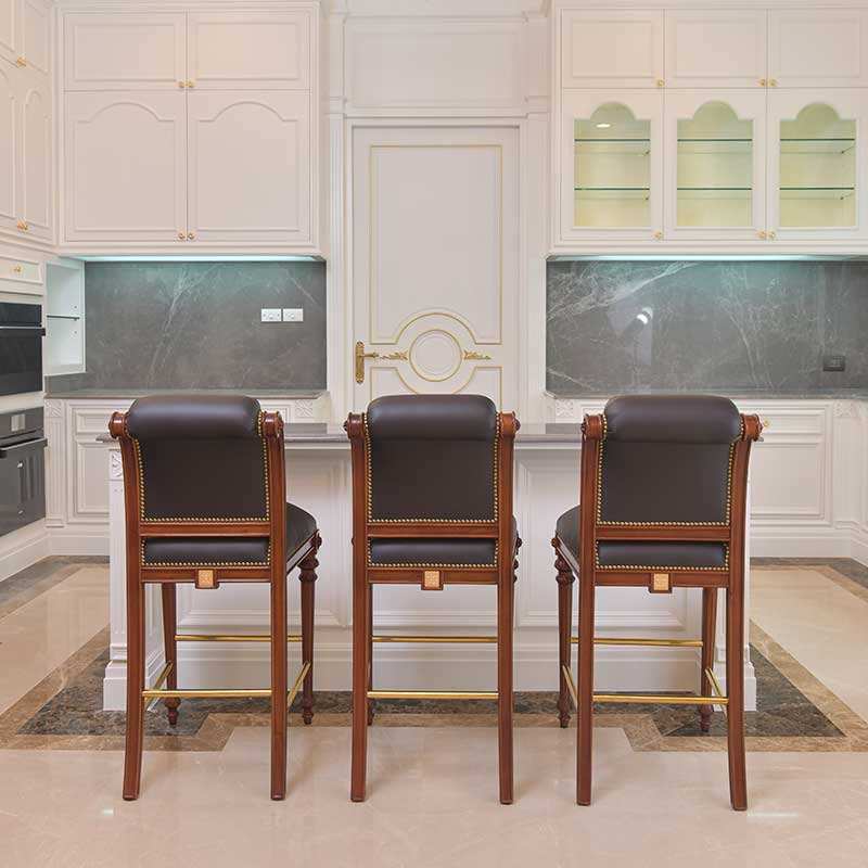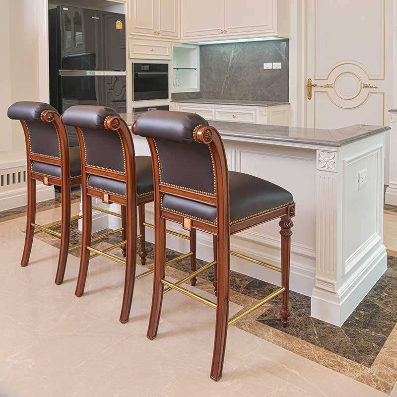 เก้าอี้บาร์คลาสสิกพร้อมการแกะสลักและเบาะรองนั่งสีน้ำตาล