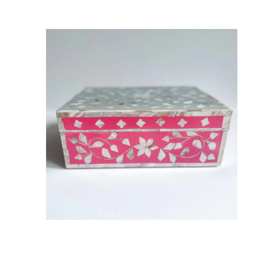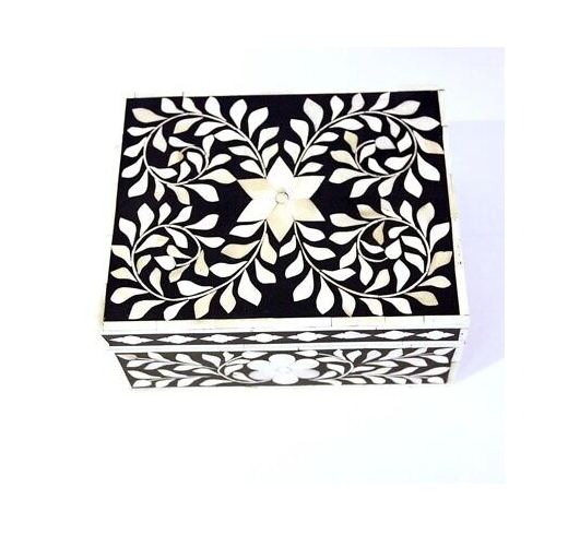 กล่องใส่เครื่องประดับโบราณลายใบไม้ ทำจากเปลือกหอยมุก รูปทรงสี่เหลี่ยม กล่องใส่เครื่องประดับสั่งทำพิเศษ