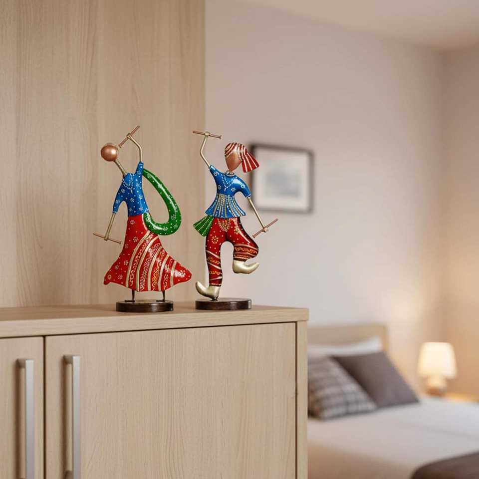 ชุดคู่รักดันดียาแบบโบราณหลากสีสันจากราชสถาน จำนวน 2 ชิ้น ทำจากโลหะ ลวดลายแกะสลักและเพ้นท์ สำหรับตกแต่งบ้าน จำหน่ายจำนวนมาก ขายส่ง ส่งออก