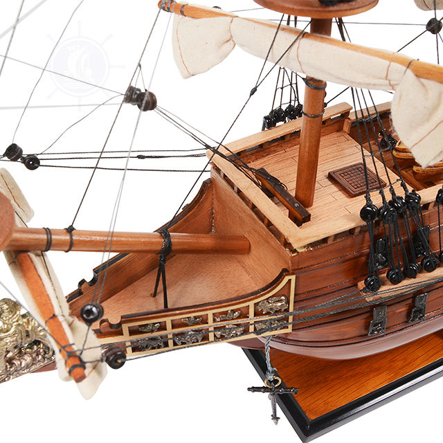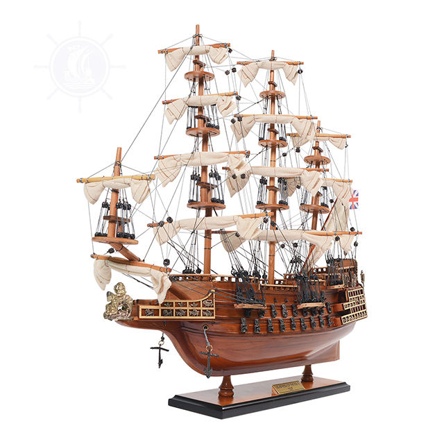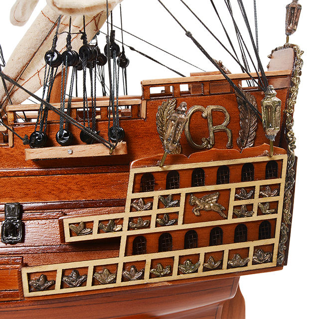 เรือจำลองโซเวอเรนซีส์ งานไม้โบราณทาสี ทนทาน ผลิตในเวียดนาม ทำด้วยมือจากไม้ซีดาร์ ของตกแต่งบ้านสไตล์ทะเล ของขวัญงานศิลปะ