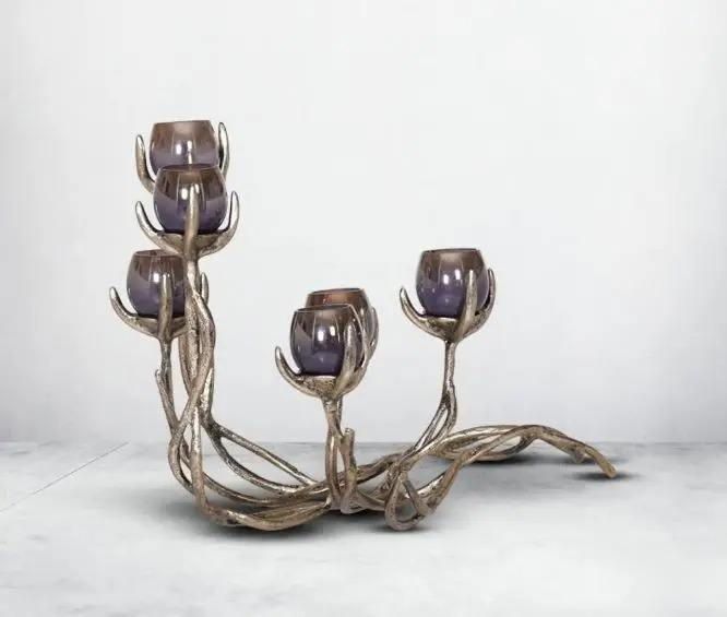 เชิงเทียนอลูมิเนียมแบบ5แขนสำหรับวางบนโต๊ะสำหรับเทศกาลอีสเตอร์งานแต่งงานที่วางเทียนแก้วโลหะใช้ในบ้าน