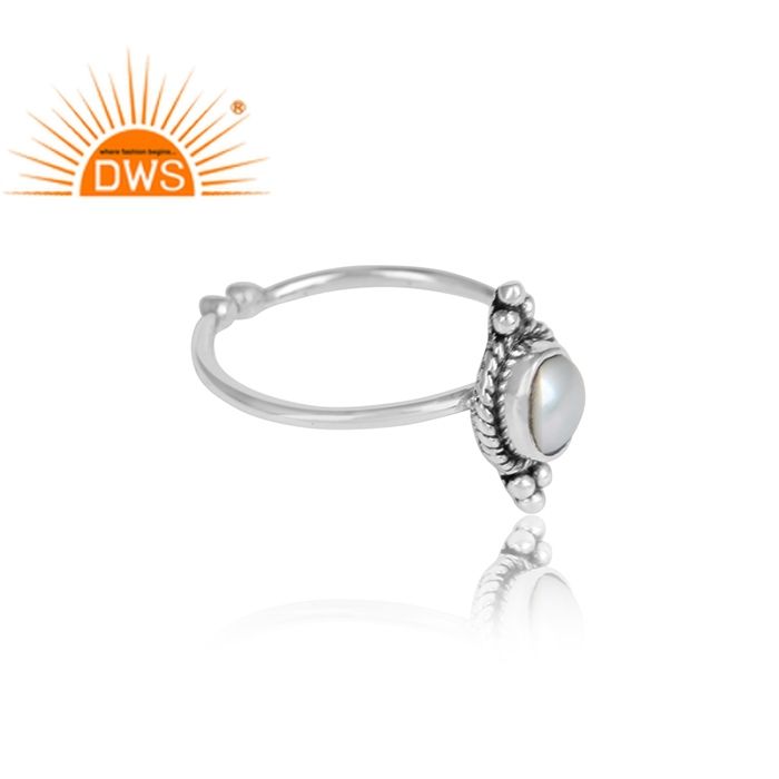 แหวนเงินแท้ 925 แบบโบราณ ตกแต่งด้วยไข่มุกน้ำจืดอินเดียสำหรับผู้หญิง ประดับพลอยแบบฝังขอบ ดีไซน์ทันสมัย