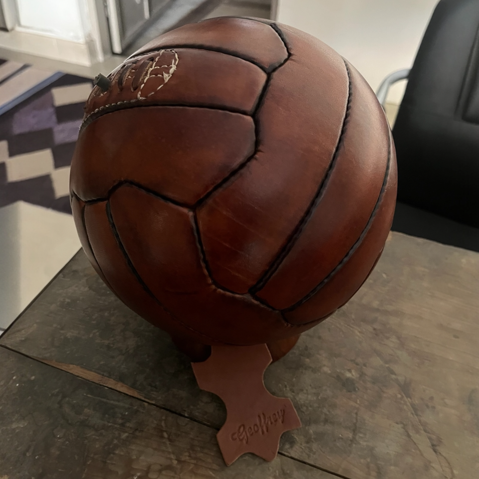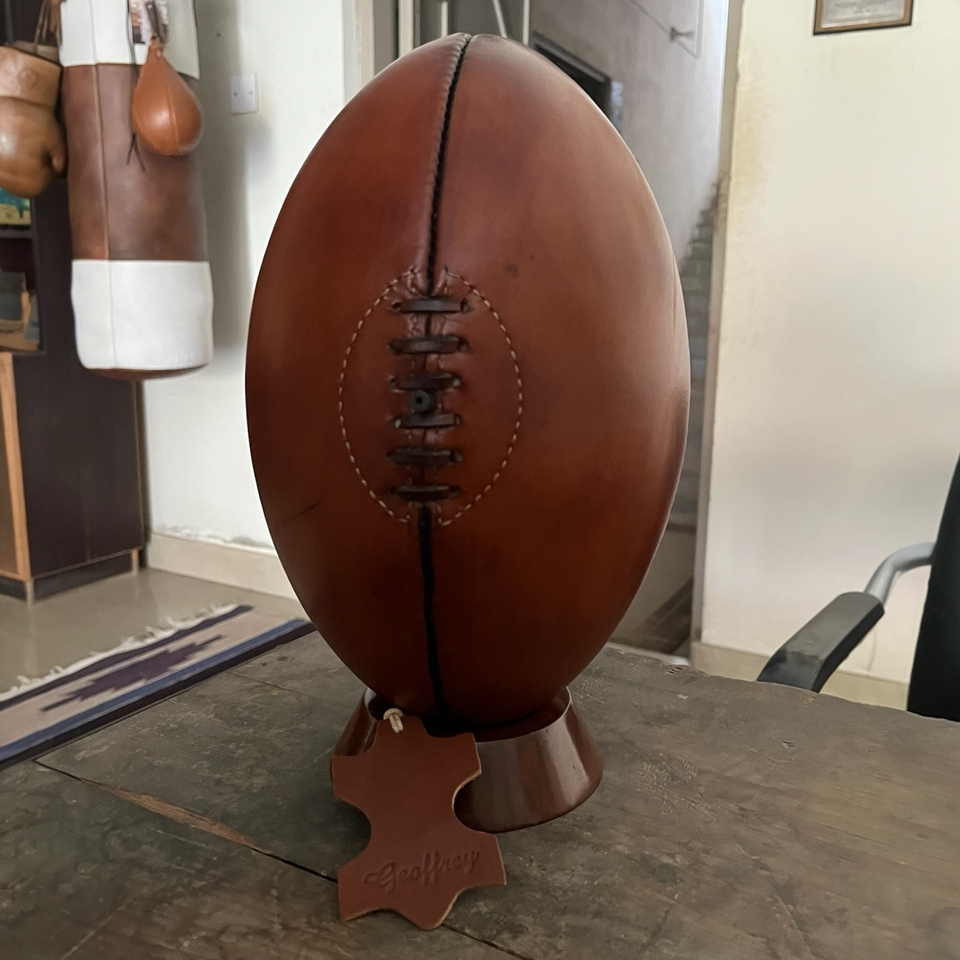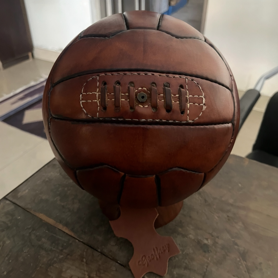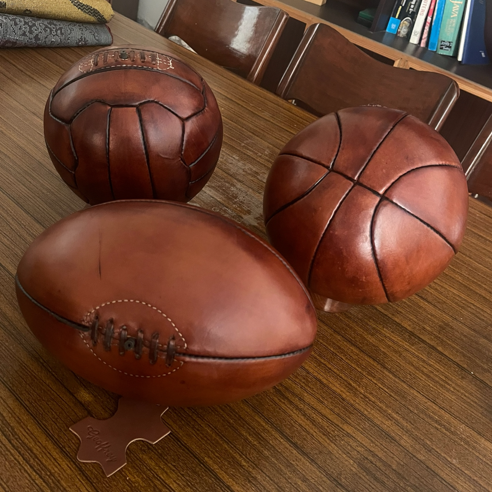 ลูกฟุตบอล รักบี้ และบาสเกตบอลหนังวัวแท้ 100% สไตล์โบราณยุค 1900 พร้อมเคลือบแว็กซ์แบบโบราณ - ขนาด 5 สำหรับตกแต่งหลากหลายกีฬา