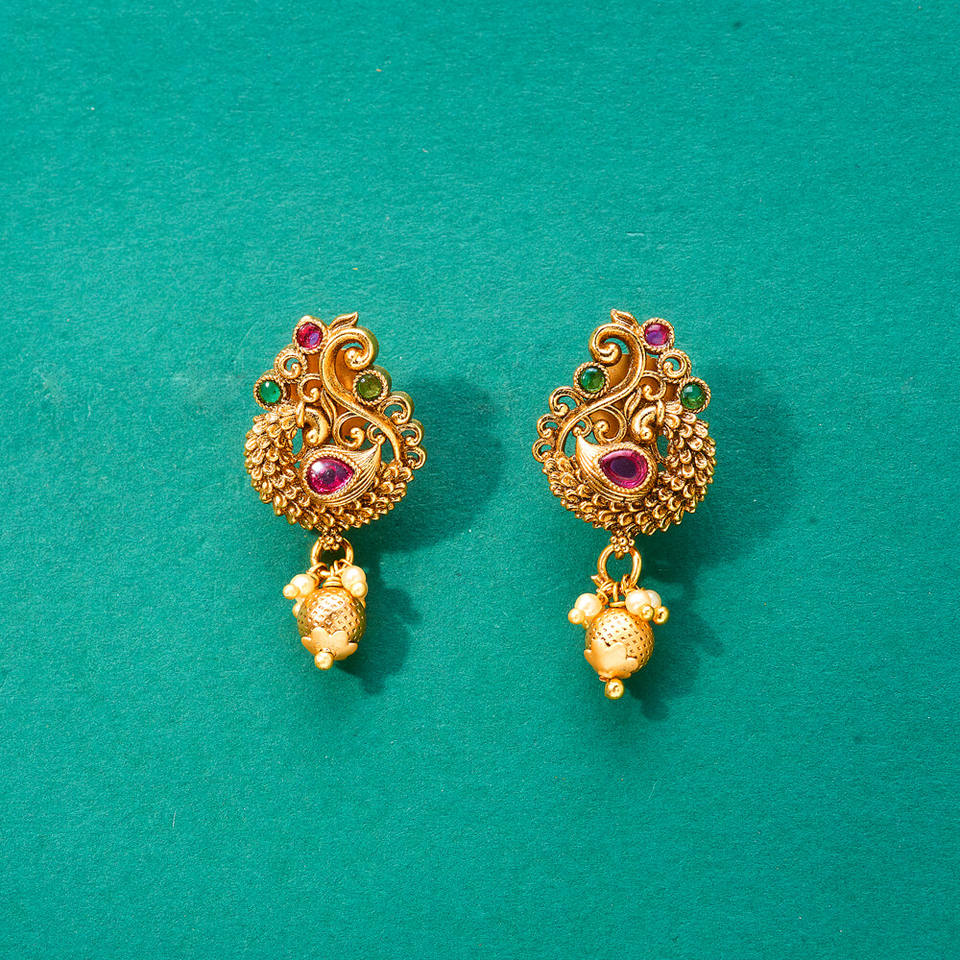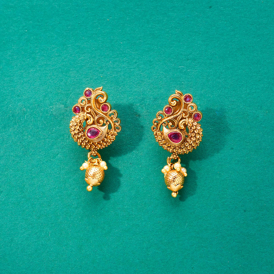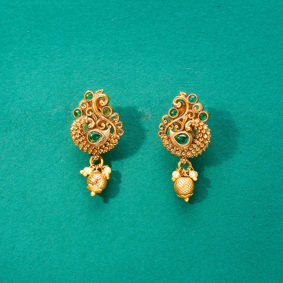 ต่างหูห่วงชุบทองด้านลายนกยูงโบราณส่งออกเครื่องประดับแฟชั่นเทียมในอินเดีย