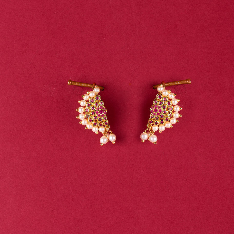ต่างหูระย้ามุกโบราณพร้อมห่วงชุบทองดีไซน์ทันสมัย