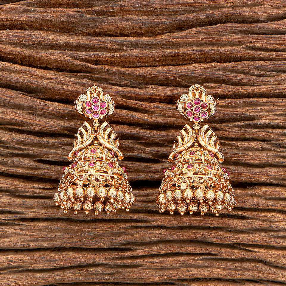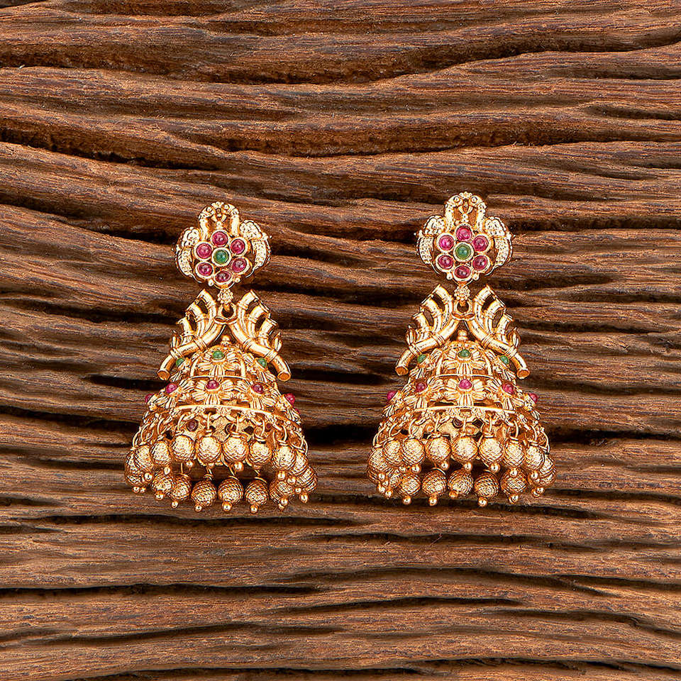 เครื่องประดับ polki โบราณต่างหูอินเดียใต้สไตล์ Jhumki ชุบทองด้านสำหรับงานแต่งงาน