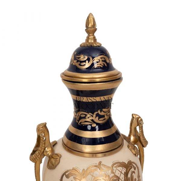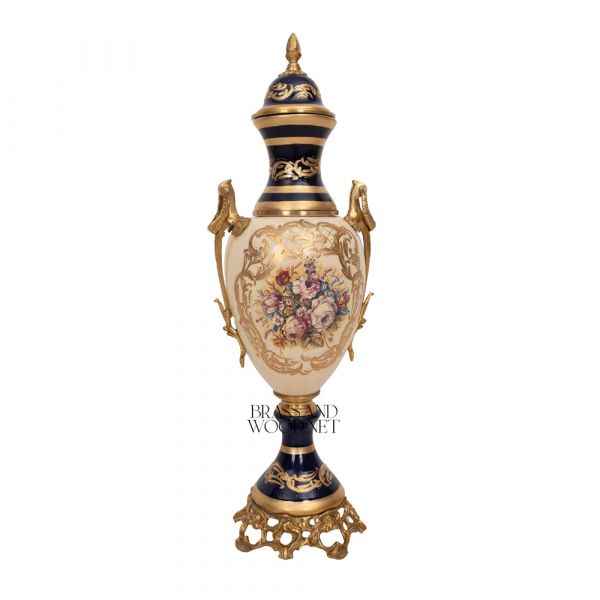แจกันทองเหลืองและพอร์ซเลนโบราณที่มีดีไซน์ลายดอกไม้วาดด้วยมือและเน้นสีทองหรูหราสำหรับการตกแต่งบ้านแบบคลาสสิก