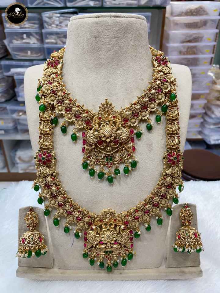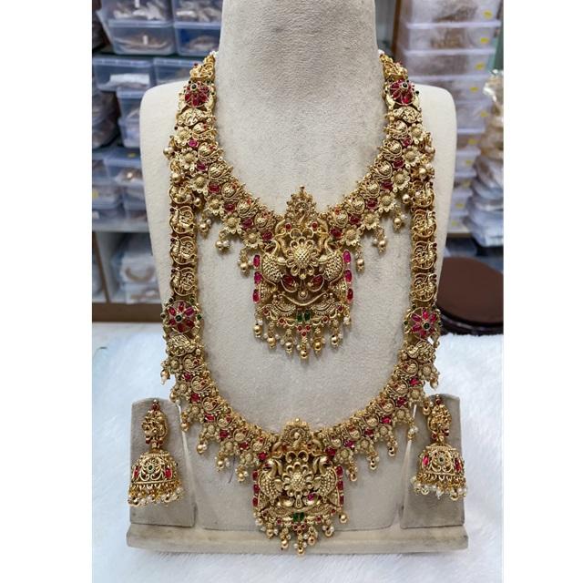 ชุดเครื่องประดับวัดชุบทองโบราณคุณภาพพรีเมียม ชุดแต่งงานแบบดั้งเดิม พร้อมชุดลักษมี จดาอู คุนดัน
