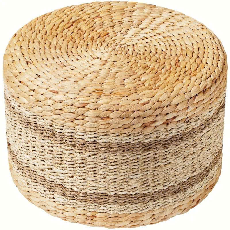 Handmade Eco-Friendly Antique Round Water Hyacinth Side Tables Adjustable Stools Ottomans for Rustic Apartment Living Spaces