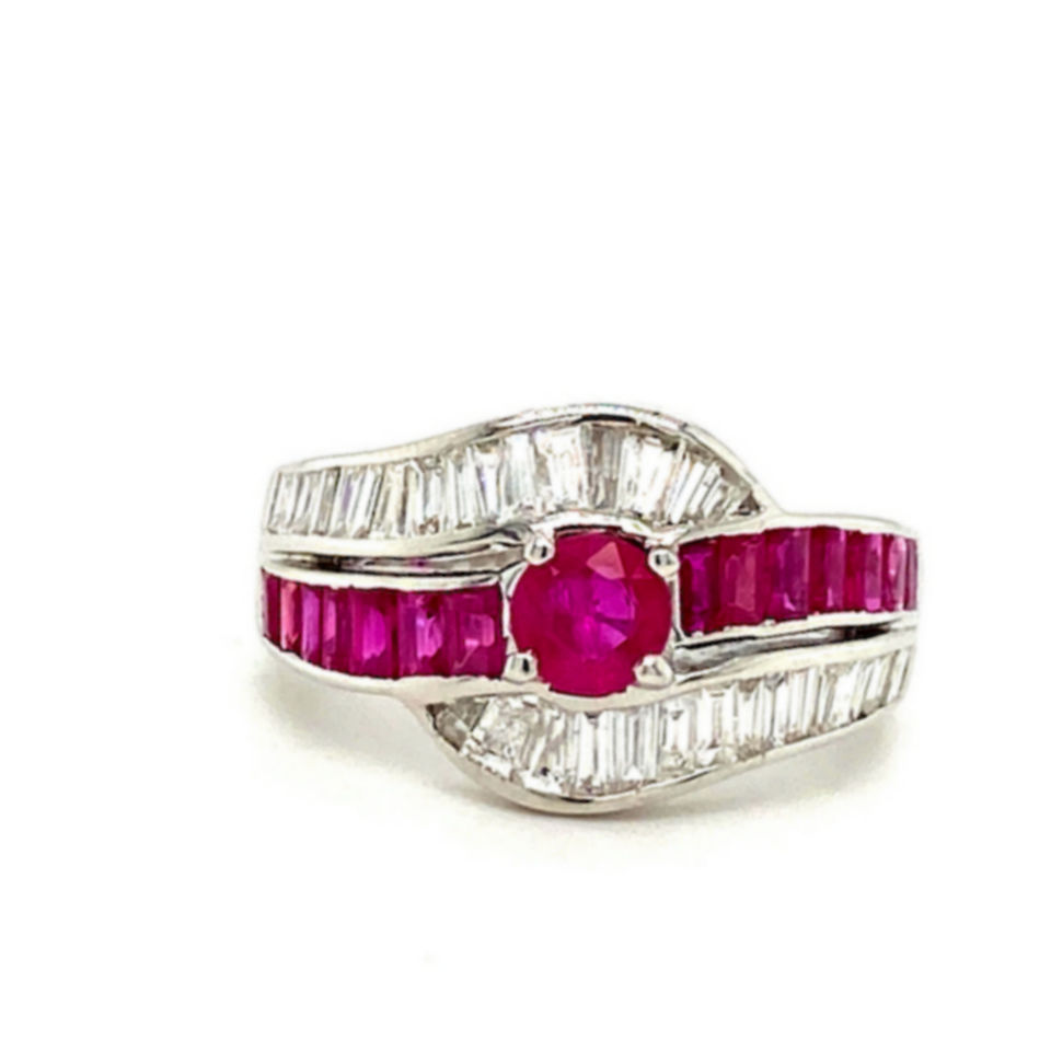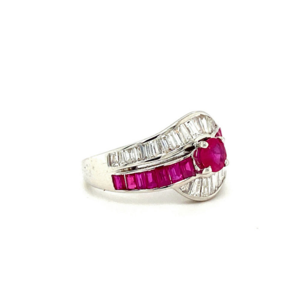 แหวนหมั้นเพชรและทับทิมโบราณใน18K เพียวไวท์โกลด์แหวนหมั้นอัญมณีหรูหราของขวัญเครื่องประดับแต่งงานผู้หญิง