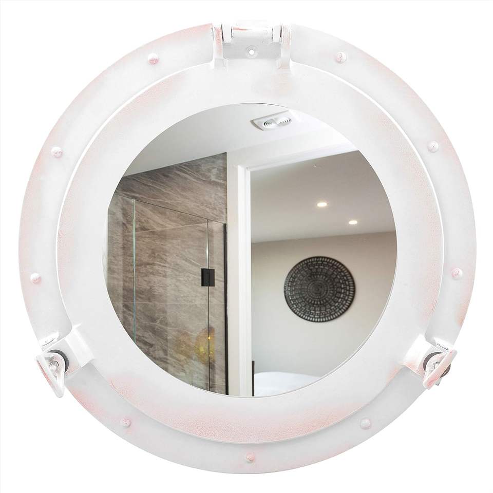 กระจกเงาทองเหลืองสีขาวแบบชนบทโบราณของตกแต่งแนววินเทจสำหรับธีมโจรสลัดของตกแต่งผนังสถานรับเลี้ยงเด็กแบบแขวน