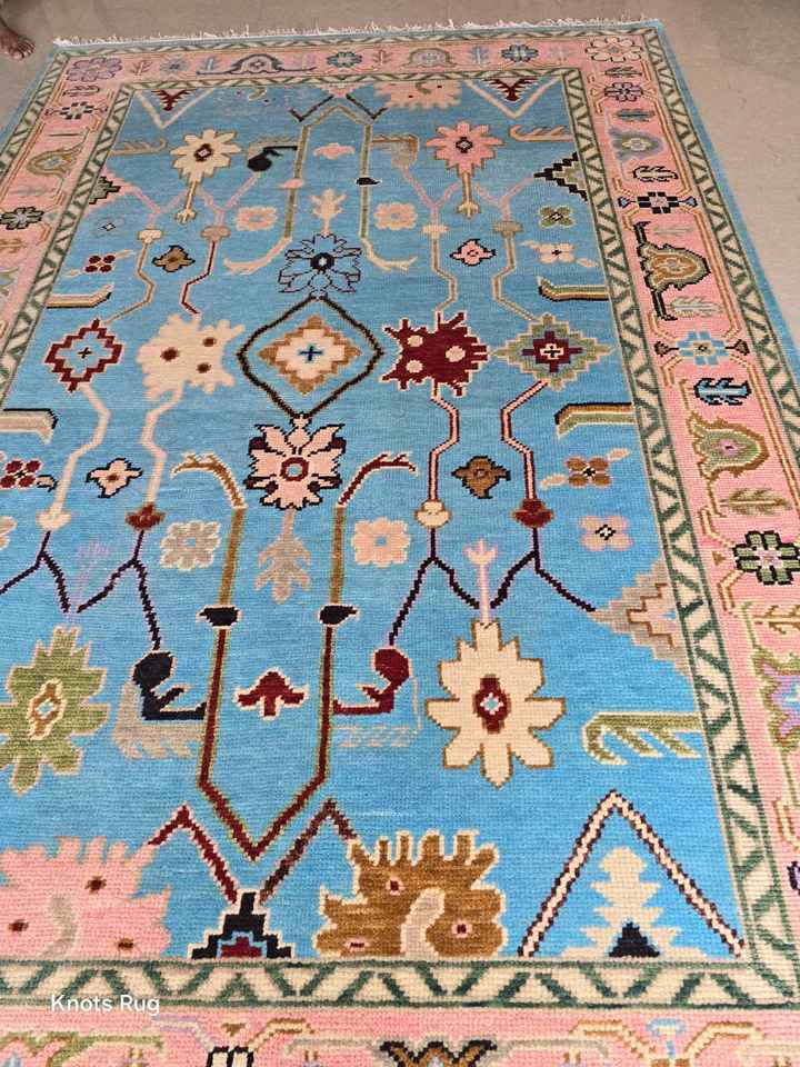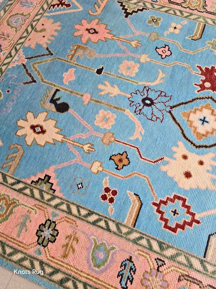 Pink Blue Wool 9x12 Beautiful Rug:Pink Blue 9x12 Beautiful Rug , High Quality Oushak Modern