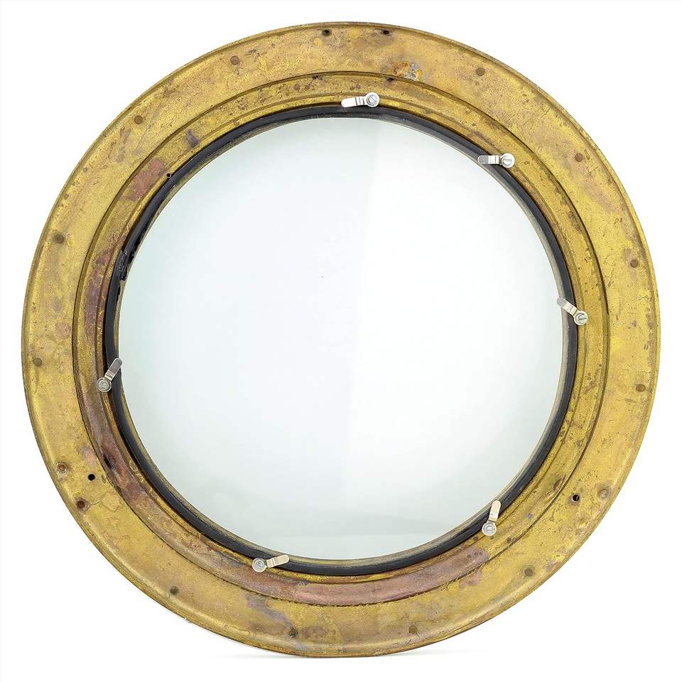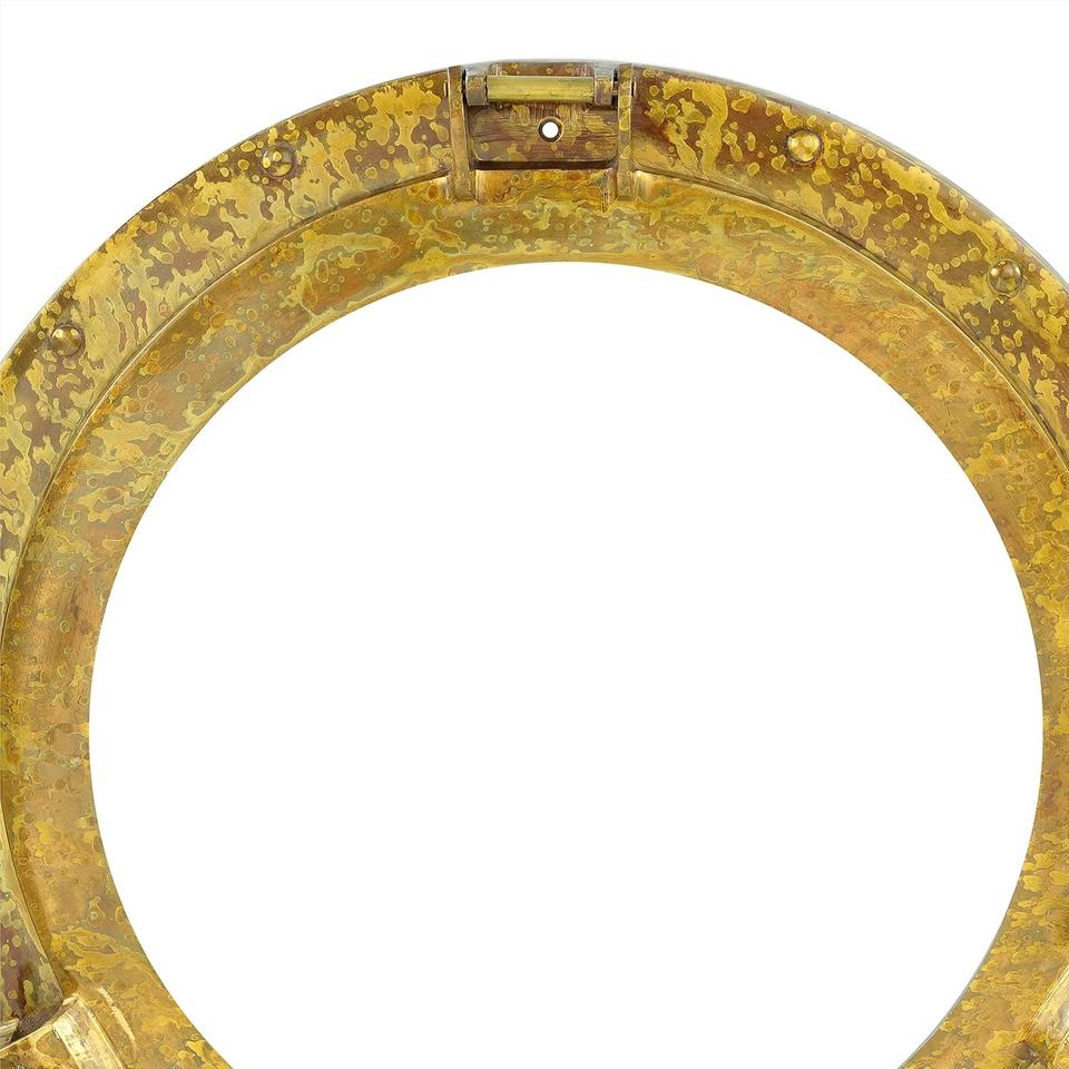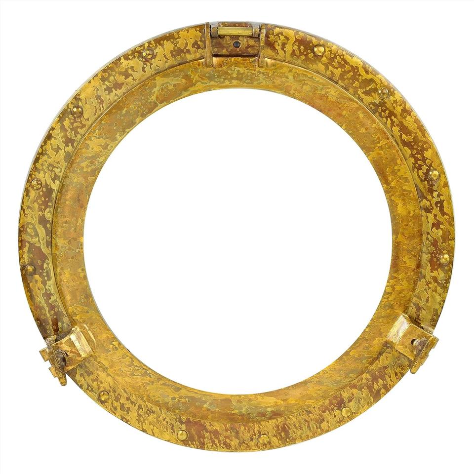 กระจกตกแต่งผนังทรงกลมสไตล์หน้าต่างเรือโบราณทำจากทองเหลืองขึ้นสนิมลายโบราณ