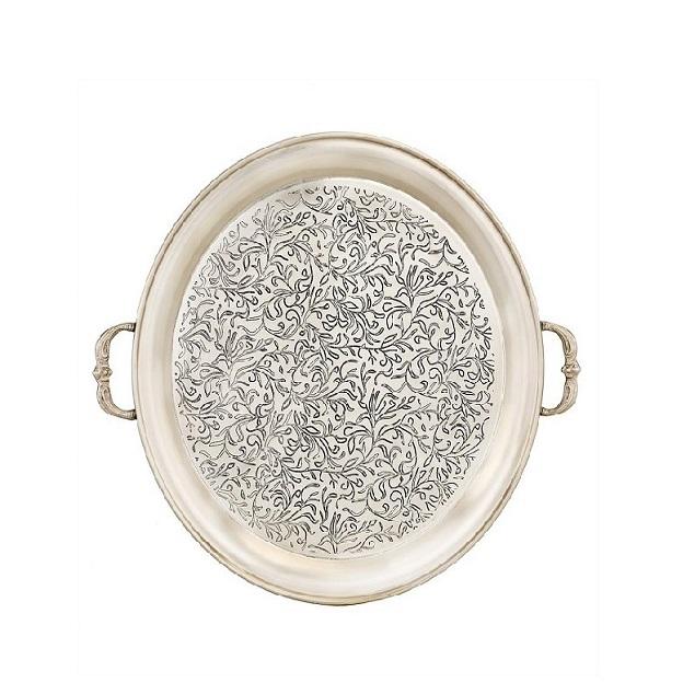 ถาดทองเหลืองสีเงินโบราณพร้อมหูจับหรูหราแก้วน้ำรูปไข่ให้บริการเสร็จแล้วสำหรับบ้านหรือโอกาสรับประทานอาหาร