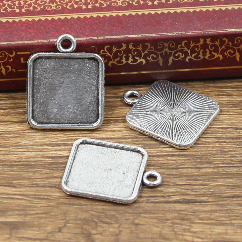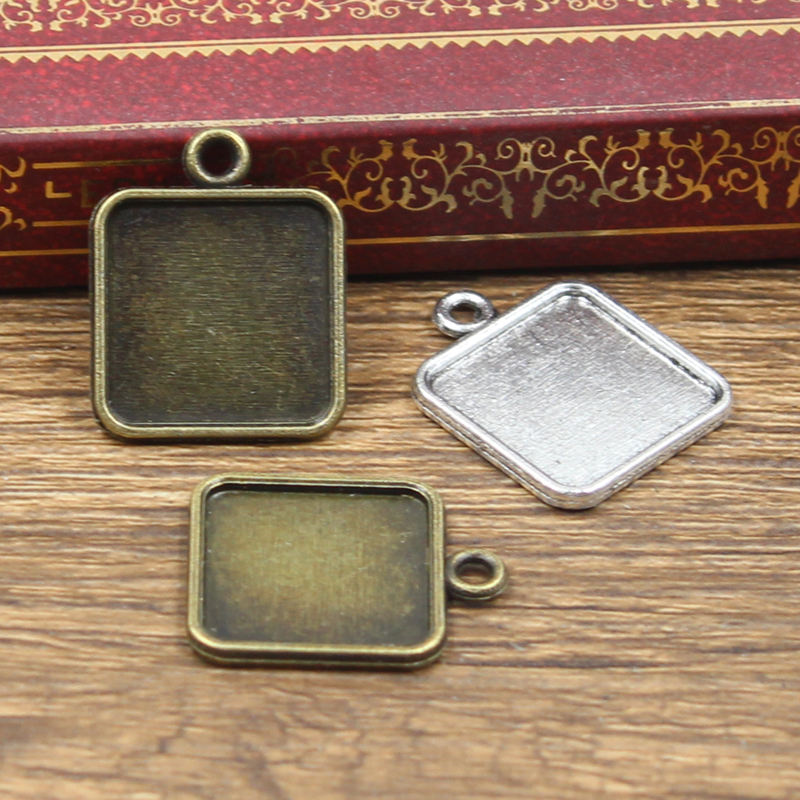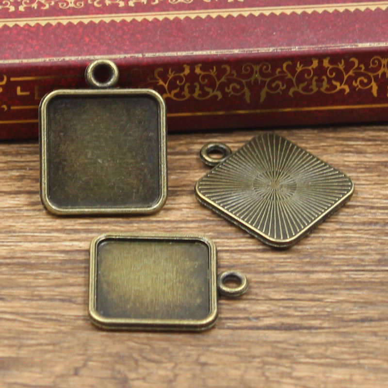 ถาดจี้ทองสัมฤทธิ์โบราณสำหรับทำ DIY ฐานแก้วทรงสี่เหลี่ยมเรียบง่าย15มม. ตั้งฐานลูกปัดหมวกสไตล์โบราณที่นิยม