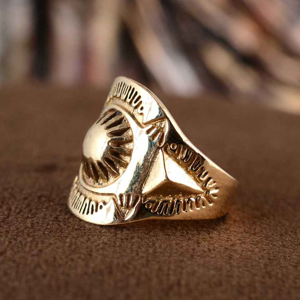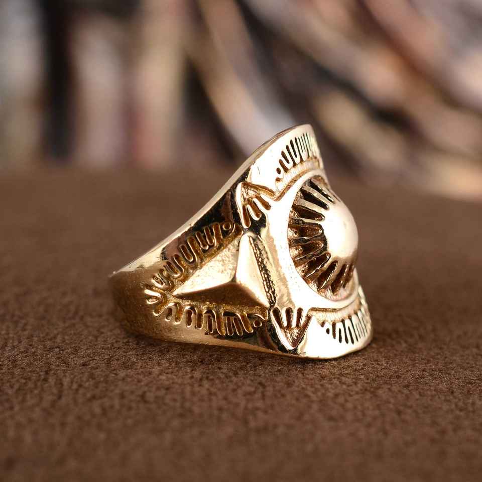 แหวนเงินและทองโบราณออกแบบตามแบบชั่วร้ายทำจากสแตนเลสสตีลแหวนทรงสามเหลี่ยมสำหรับผู้ชายเครื่องประดับแฟชั่น