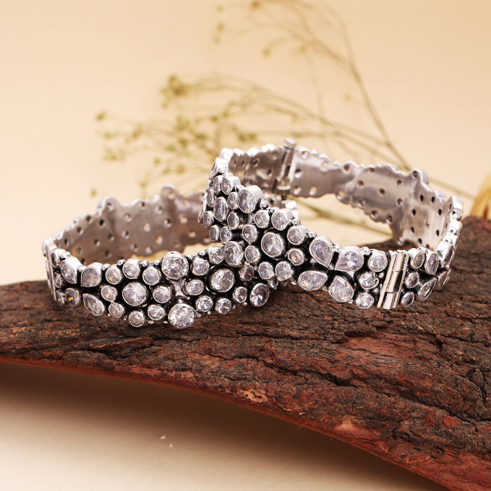 กำไลข้อมือปรับขนาดได้ประดับคริสตัลสีขาวสังเคราะห์ ตัวเรือนทองเหลืองชุบเงินโบราณ ชุดวินเทจสำหรับผู้หญิง เหมาะสำหรับเป็นของขวัญ