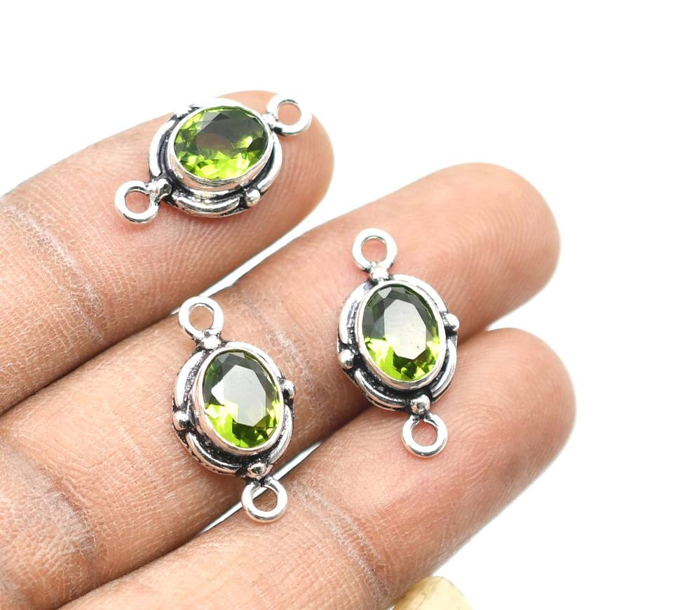 Prem Bhaya Antique Silver Plated 18K Gold Plated Peridot Gemstone Oval Double Loop Connector 20X10mm NC123-Peridot Findings
