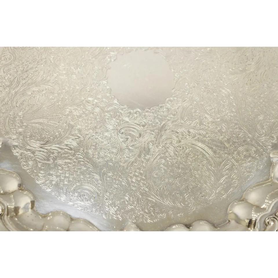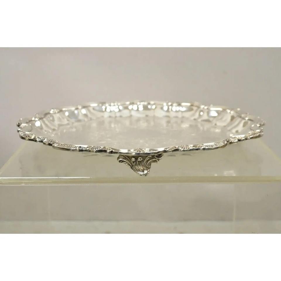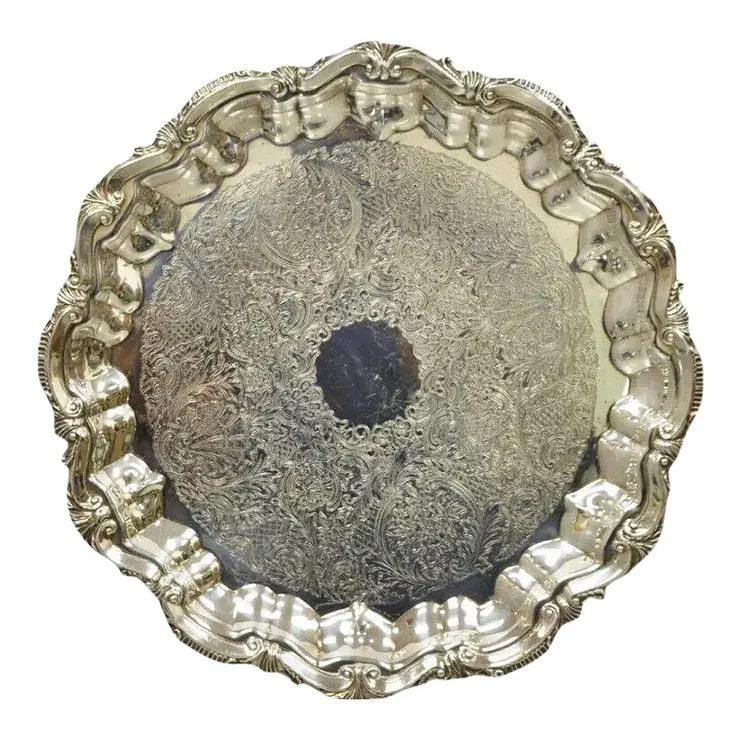ถาดเสิร์ฟแบบเจาะรู ชุบเงินโบราณ ถาดชุบเงินวินเทจ สไตล์วิคตอเรียน ขอบหยัก