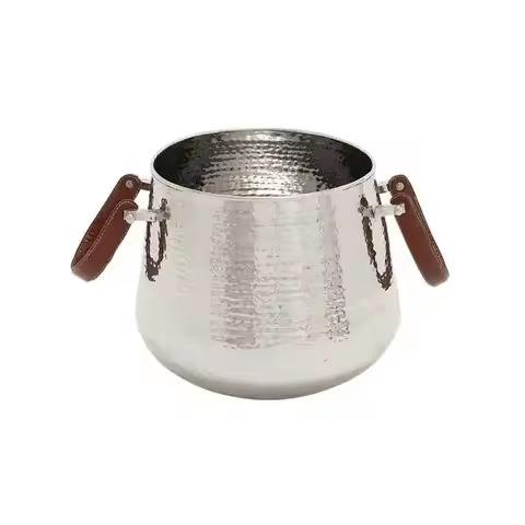 ถังน้ำแข็งสแตนเลสชุบเงินโบราณ พร้อมหูจับแบบวงแหวน สำหรับใส่เครื่องดื่มเย็น ป้องกันการรั่วซึม เก็บความเย็นได้นาน